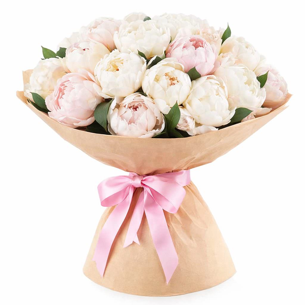Монобукет из белых пионов «Снежный шар» с гарантией качества, цены и быстрой доставки!